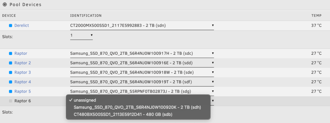 raptor). - Définissez le nombre d'emplacements pour correspondre au nombre de disques que vous souhaitez dans votre ou vos vdev(s) de données principal(aux).